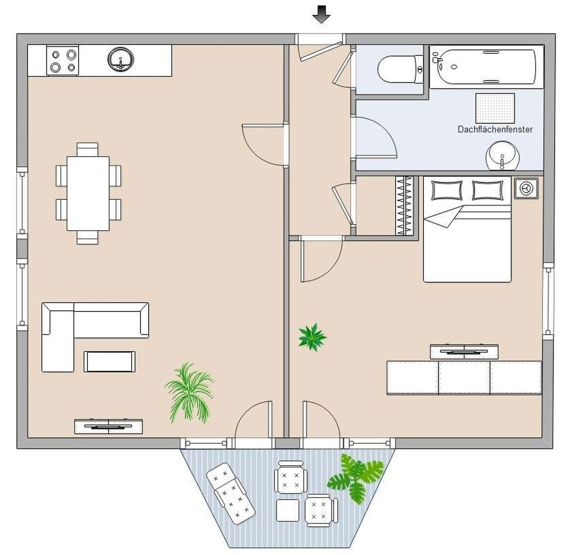 Balkon, Garten, Einbauküche, Laminat, Fliesen