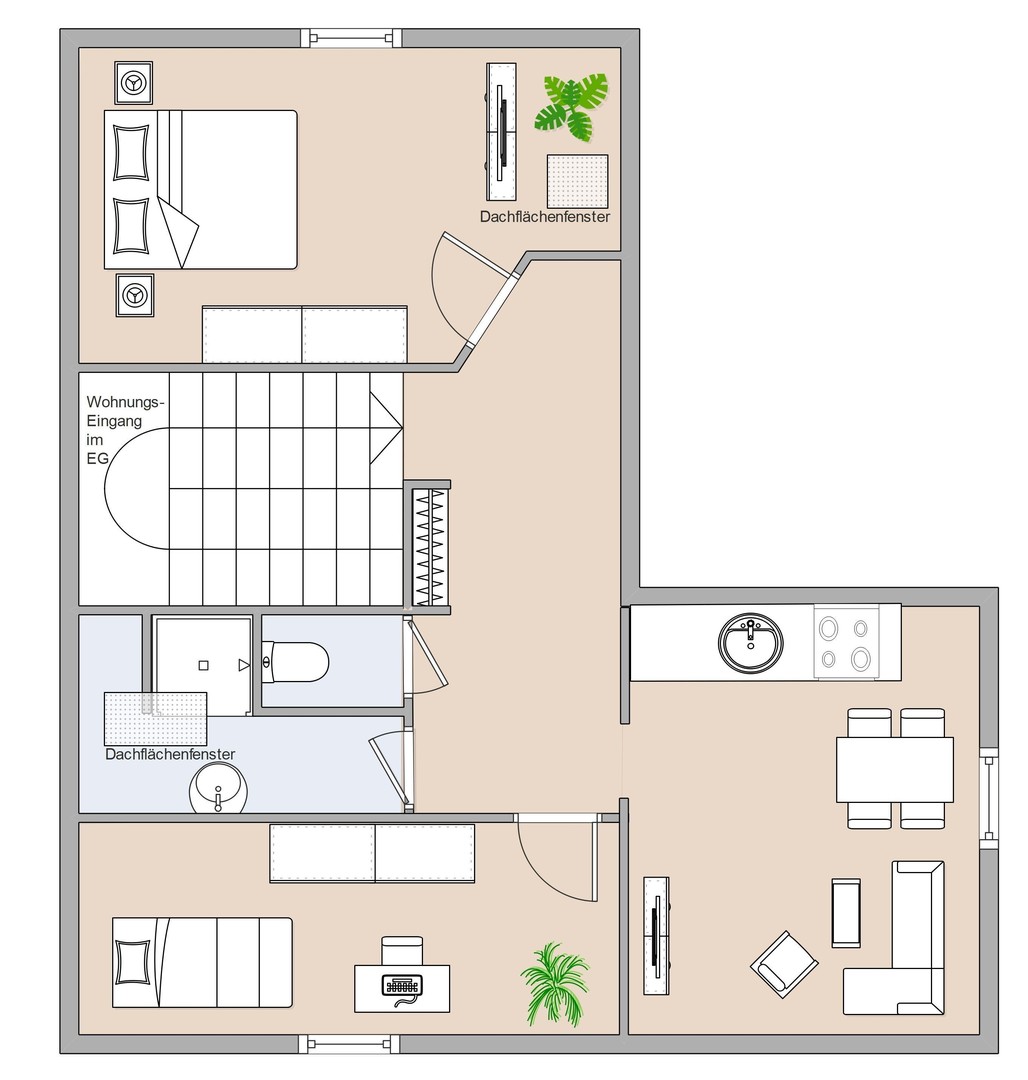Im Hauptgebäude befinden sich insgesamt 12 Wohneinheiten – jeweils vier pro Etage. Die Erschließung der Wohnungen erfolgt komfortabel über zwei innenliegende Stiegenhäuser.