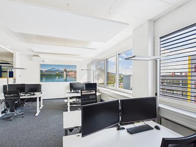 Ideal für Unternehmen, die nach einer modernen und gut ausgestatteten Bürofläche in Sursee suchen. Die zentrale Lage, nur 600 m vom Autobahnanschluss entfernt macht die Anreise einfach und bequem. Die Akustikdecken sorgen für eine angenehme Arbeitsatmosphäre, während die grosszügige Küche zur Verfügung steht. Helle Räume und gute Aussenlärmdämmung bieten optimale Bedingungen für konzentriertes Arbeiten. Zusätzlich können Aussenparkplätze angemietet werden. Die Nähe zur Bushaltestelle und dem Bahnhof Sursee rundet das Angebot perfekt ab.
