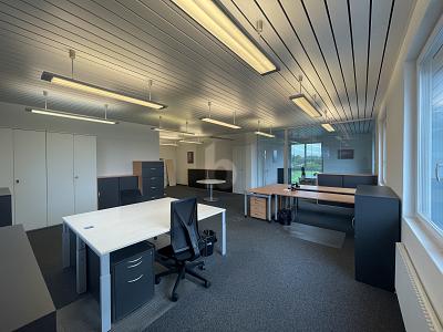 Im Gebäude in Härkingen steht ein gut ausgestatteter Büroraum zur Verfügung - ideal für kleine Unternehmen, die eine flexible und repräsentative Arbeitsumgebung suchen. Der Raum bietet einen offenen, lichtdurchfluteten Arbeitsbereich sowie ein separates, verglastes Büro, das sich perfekt als Besprechungsraum eignet.
