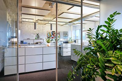 - Grossraumbüro und ein abgetrenntes 2er Büro im offenem Glasstil