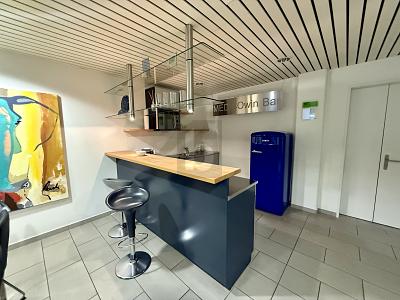 - moderne Kaffeebar mit voll ausgestatteter Küchenzeile