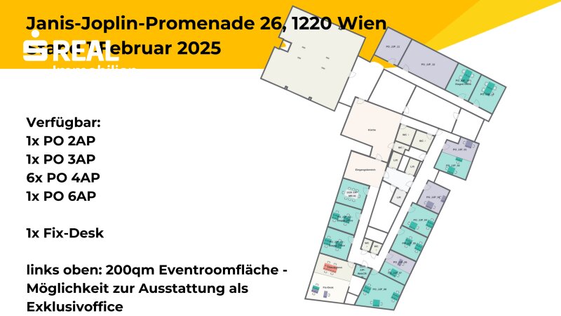 Entdecken Sie Andys Janis-Joplin Promenade – moderne, provisionsfreie Büroflächen und Co-Working-Spaces in der Seestadt, 1220 Wien.