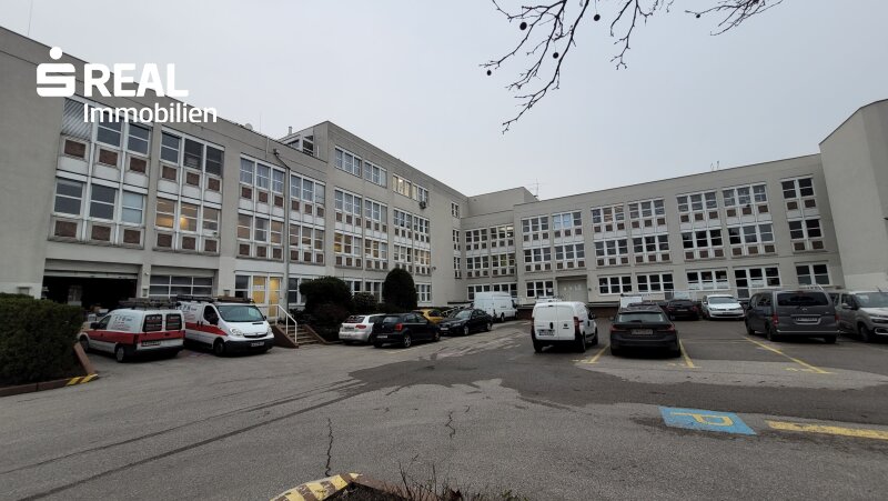 Die Büroräume liegen im 1.Stock – es gibt einen zweiten Ausgang über die Fluchtstiege zu den Parkplätzen im Hof. Der Lastenlift ist im 1. Stock im Bürobereich zugänglich.