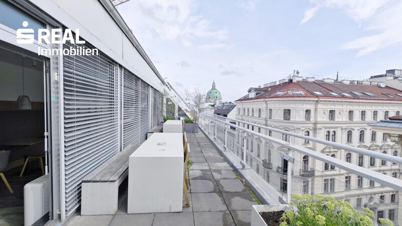 Mitten im Herzen des 4. Wiener Gemeindebezirks – in der charmanten Argentinierstraße – zwischen Karlsplatz (U2, U4) und Taubstummengasse (U1), wartet eine ganz besondere Bürofläche auf neue Mieter. Rund 237 m² im Dachgeschoss stehen zur Verfügung – ruhig gelegen und modern ausgestattet. Raum für Ideen – und frische Luft: Das Büro überzeugt nicht nur mit seiner durchdachten Raumaufteilung, sondern auch mit zwei großzügigen Dachterrassen, die Ihre Kaffeepause in einen Kurzurlaub verwandeln. Ob Brainstorming unter freiem Himmel oder entspanntes Mittagessen mit Ausblick – hier lässt es sich arbeiten und durchatmen. Aktuelle Raumaufteilung: 4 helle Büroräume 1 großzügiger Besprechungsraum Küche mit gemütlichem Essbereich Sanitärräume Serverraum Ausstattung: Die gepflegte Fläche ist mit Laminatboden, verfliesten Nassräumen und einer Klimaanlage ausgestattet. Elektrische Außenbeschattung auf beiden Seiten sorgt für ein angenehmes Raumklima – auch an heißen Sommertagen. Beheizt wird zentral mittels Fernwärme, komfortabel und effizient. Umgebung & Infrastruktur: In fußläufiger Nähe finden Sie zahlreiche Restaurants, Cafés, Geschäfte des täglichen Bedarfs und perfekte öffentliche Anbindungen. Die Innenstadt ist in wenigen Minuten erreichbar – eine Lage, wie sie besser kaum sein könnte.