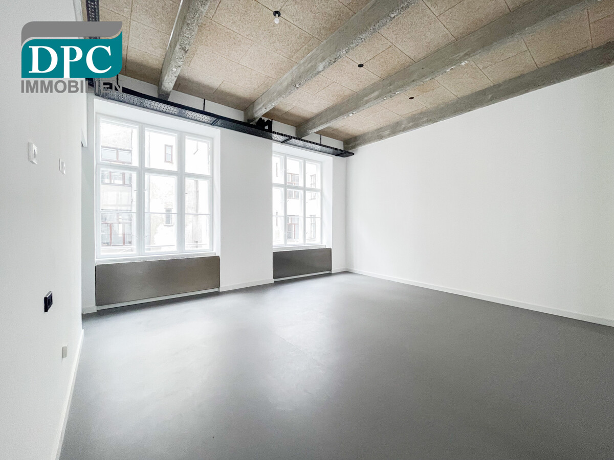 Zur Vermietung gelangt eine Loft-Bürofläche mit ca. 111 m² in einem schönen Altbauhaus, unweit der Mariahilfer Straße.