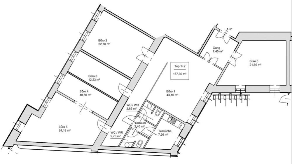 Das Bürohaus aus dem Jahr 1914 ist in einem gepflegten Zustand und bietet eine Nutzfläche von 157 m². Es verbindet historischen Charme mit modernem Komfort. Besonders hervorzuheben ist die hochwertige Teeküche.