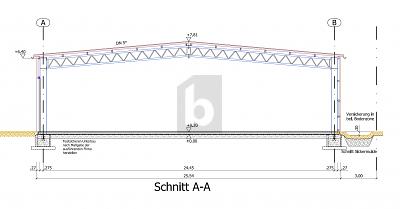 - Anschlüsse für Wasser, Abwasser, WC werden an 2 Stellen in der Halle auf Wunsch angebracht