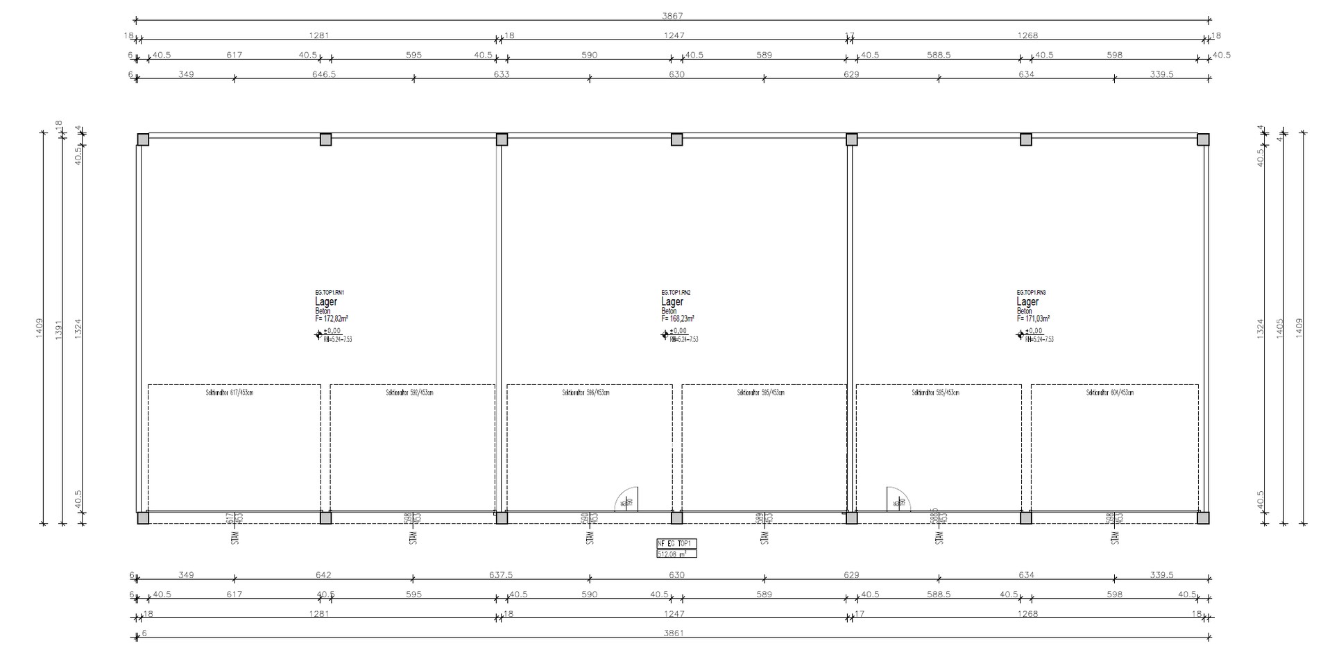 3 Lagerhallen mit 190 m2 jeweils verfügbar.