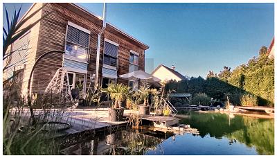 Dieses moderne Einfamilienhaus vereint exklusives Wohnen mit Naturerlebnis. Auf rund 106 m² Wohnfläche erwartet Sie eine offene, lichtdurchflutete Architektur mit hochwertigen Materialien und klaren Linien. Das absolute Highlight ist der große Natur-Schwimmteich, der das Außenareal in eine private Wohlfühloase verwandelt. Ob gemütliche Sommerabende auf der Terrasse oder entspannte Stunden im Wasser ? hier genießen Sie Wohnen auf höchstem Niveau. Perfekt für Paare und Familien, die Wohnen mit Urlaubsgefühl suchen.