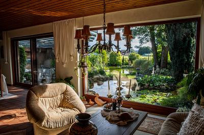 - Kamin im Wohnzimmer und auf der Terrasse