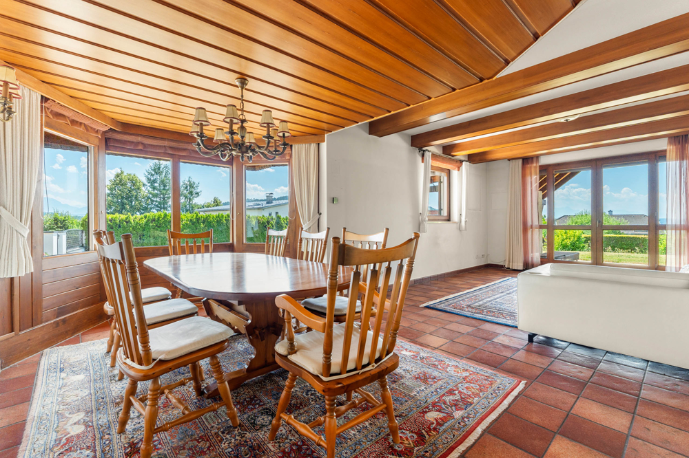 Willkommen in diesem prächtigen Landhaus in Maria Saal, nur ca. 9 km von Klagenfurt entfernt. Diese außergewöhnliche Immobilie besticht nicht nur durch ihre herrliche Ruhelage am Waldrand, sondern bietet auch ein einzigartiges Ambiente, das sowohl Eleganz als auch Gemütlichkeit ausstrahlt. Mit einer beeindruckenden Wohnfläche von ca. 250 m², aufgeteilt auf zwei Etagen, finden Sie hier genügend Raum für Ihre individuellen Gestaltungswünsche. Drei großzügige Schlafzimmer sowie eine separat zugängliche Einliegerwohnung -ausgestattet mit einem weiteren Schlafzimmer - eröffnen vielfältige Nutzungsmöglichkeiten, sei es für Gäste, als Büro oder gar als Rückzugsort für kreative Projekte. Ein weiteres Highlight dieser Immobilie ist der geräumige Keller der auch einen kleinen Wellnessbereich besitzt. Das angrenzende Nebengebäude besticht mit zwei Garagenplätzen und einem urigen Nebenraum, dieser eignet sich hervorragend für gesellige Feiern im Kreise von Freunden und Familie. Dank der optimalen Südausrichtung erfreut sich die gesamte Liegenschaft an ganztägigem Sonnenschein. Dies sorgt nicht nur für ein helles und freundliches Raumklima, sondern vermittelt auch einen majestätischen Charm von Großzügigkeit und Eleganz. Diese besondere Immobilie ist der ideale Rückzugsort für all jene, die Ruhe und Erholung suchen, ohne auf die Vorzüge eines gehobenen Lebensstils in seriöser Nachbarschaft verzichten zu müssen. Genießen Sie die perfekte Kombination aus ländlicher Idylle und zentraler Lage – hier finden Sie Ihr Traumhaus!