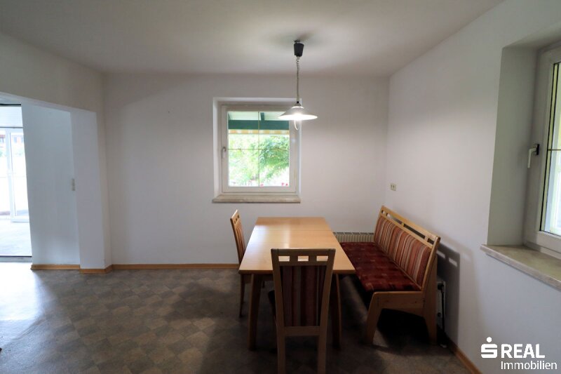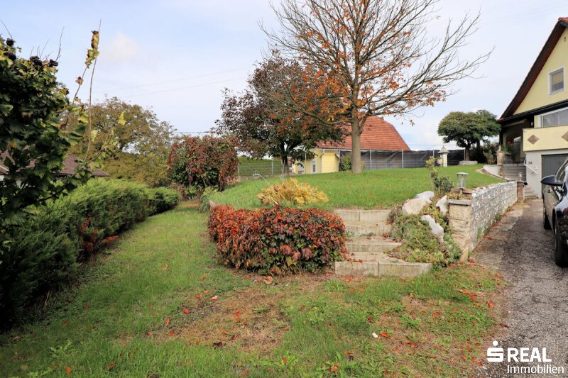 Ein Einfamilienhaus in ruhiger, sonniger Lage mit offenem Weitblick. Das massiv gebaute Haus besteht aus einem Erdgeschoss, Dachgeschoss und ist voll unterkellert. Eine Garage wurde an dem Keller angebaut und darauf befindet sich eine Terrasse als Verlängerung zum Wintergartenanbau. Der Wintergarten ist über die Küche begehbar und verfügt zusätzlich über einen Ausgang in den Garten. Über einen überdachten Gang kommt man in den Vorraum mit einer Gästetoilette. Über dem zentralen Vorraum erreicht man alle Räume im Erdgeschoss. Ein Wohn-Essraum mit Kachelofen ist mit der großen Küche über einem offenen Durchgang verbunden. Von der Küche kommt man direkt in den Wintergarten. Im Erdgeschoss steht noch ein Zimmer und ein kleines Badezimmer zur Verfügung. Im Dachgeschoss gibt es 3 Zimmer und ein WC mit Waschgelegenheit. Westseitig vom Haus befindet sich noch eine gepflasterte Terrassenfläche mit einem Pavillon. Über die Jahre wurden immer wieder Sanierungen durchgeführt. Die Grundsubstanz des Hauses ist in einem guten Zustand und ist trocken.