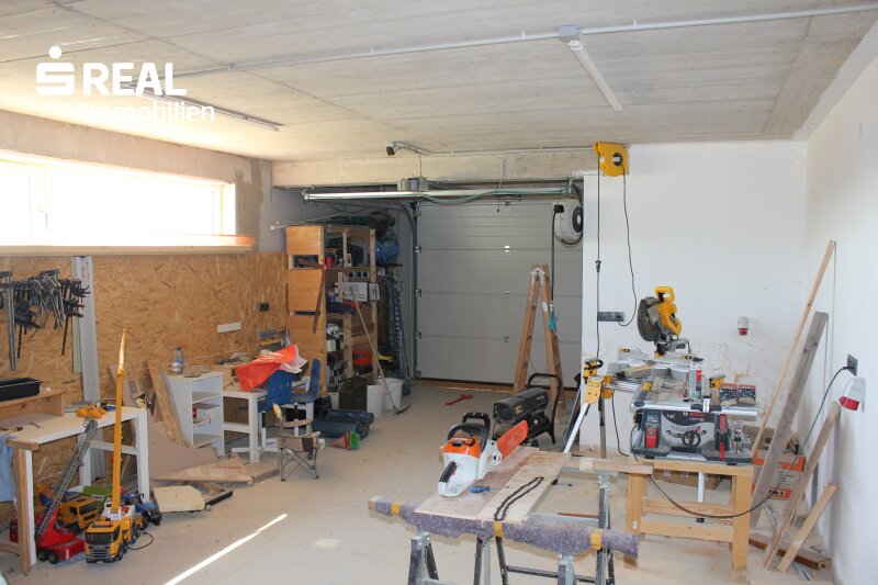 Zusätzlich vorhanden ist noch eine ca. 58 m² große Doppelgarage, von der Sie auch einen direkten Zugang ins Haus haben.