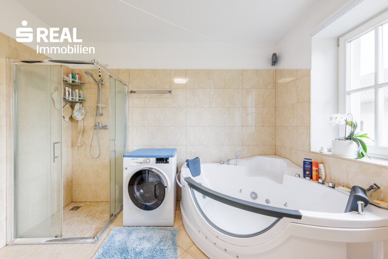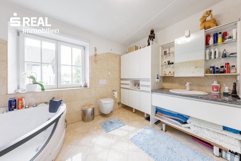 Die Qualität des Hauses kann sich sehen lassen: 50 cm Ziegel mit Zement- und Edelputzschicht, außen Thermoputz, innen 25 cm Wienerbergerziegel, Kaminmauerwerk für die Pelletsheizung sowie für den offenen Kamin, Böden mit Bambusparkett verlegt, durchgehend Fußbodenheizung. Auch innen wurden nur beste Materialien verwendet und die Anordnung der Räume und Fenster bzw. Türen folgen dem Feng-Shui-Prinzip - ein Zuhause zum Wohlfühlen.