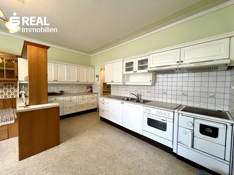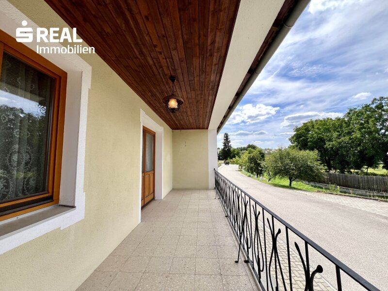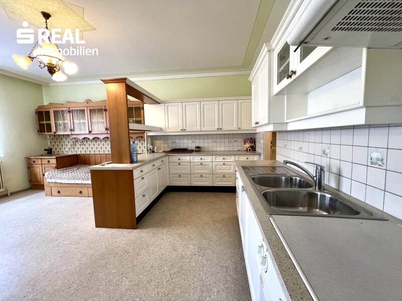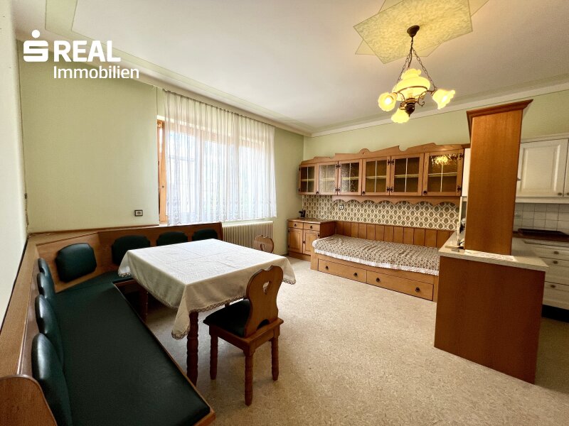 einladender Eingangsbereich mit viel Platz für Garderobe und Stauraum Wohnzimmer mit direktem Zugang auf die überdachte Terrasse großzügige Einbauküche mit angrenzendem Essbereich und praktischer Speisekammer Badezimmer ausgestattet mit Doppelwaschbecken, Dusche und Badewanne separate Toilette für zusätzlichen Komfort vier vielseitig nutzbare Zimmer – perfekt als Schlafzimmer, Kinderzimmer, Büro oder GästezimmerAußenbereiche & Nebengebäude