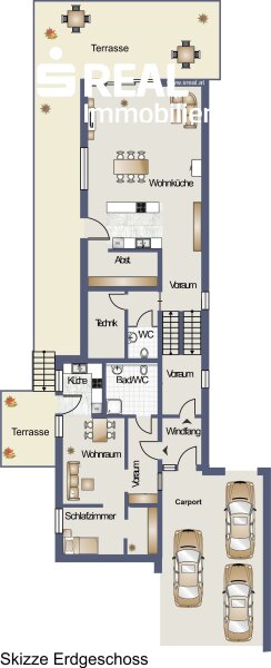Ein Carport für drei Fahrzeuge befindet sich straßenseitig direkt beim Eingang.