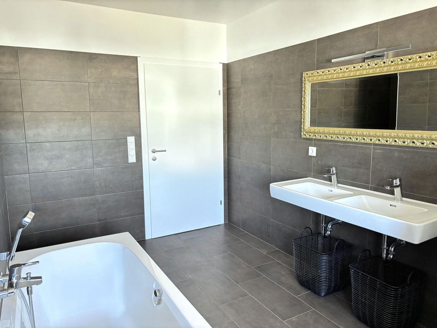 Darüber hinaus ist das Haus mit hochwertigen Schlotterer-Rolläden ausgestattet, die optimalen Sonnen- und Sichtschutz bieten. Die exklusive, maßgefertigte Dan-Einbauküche mit modernen Markengeräten lässt keine Wünsche offen und macht das Kochen zum Genuss. Hochwertige Innentüren von Kunex unterstreichen den stilvollen Wohncharakter. Ein edler Laminatboden sorgt im gesamten Wohnbereich für ein warmes, gemütliches Ambiente, während geschmackvolle, langlebige Fliesen in Bad, WC und Vorraum zeitlose Eleganz und leichte Pflege garantieren.