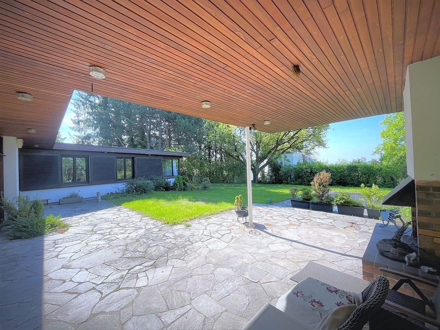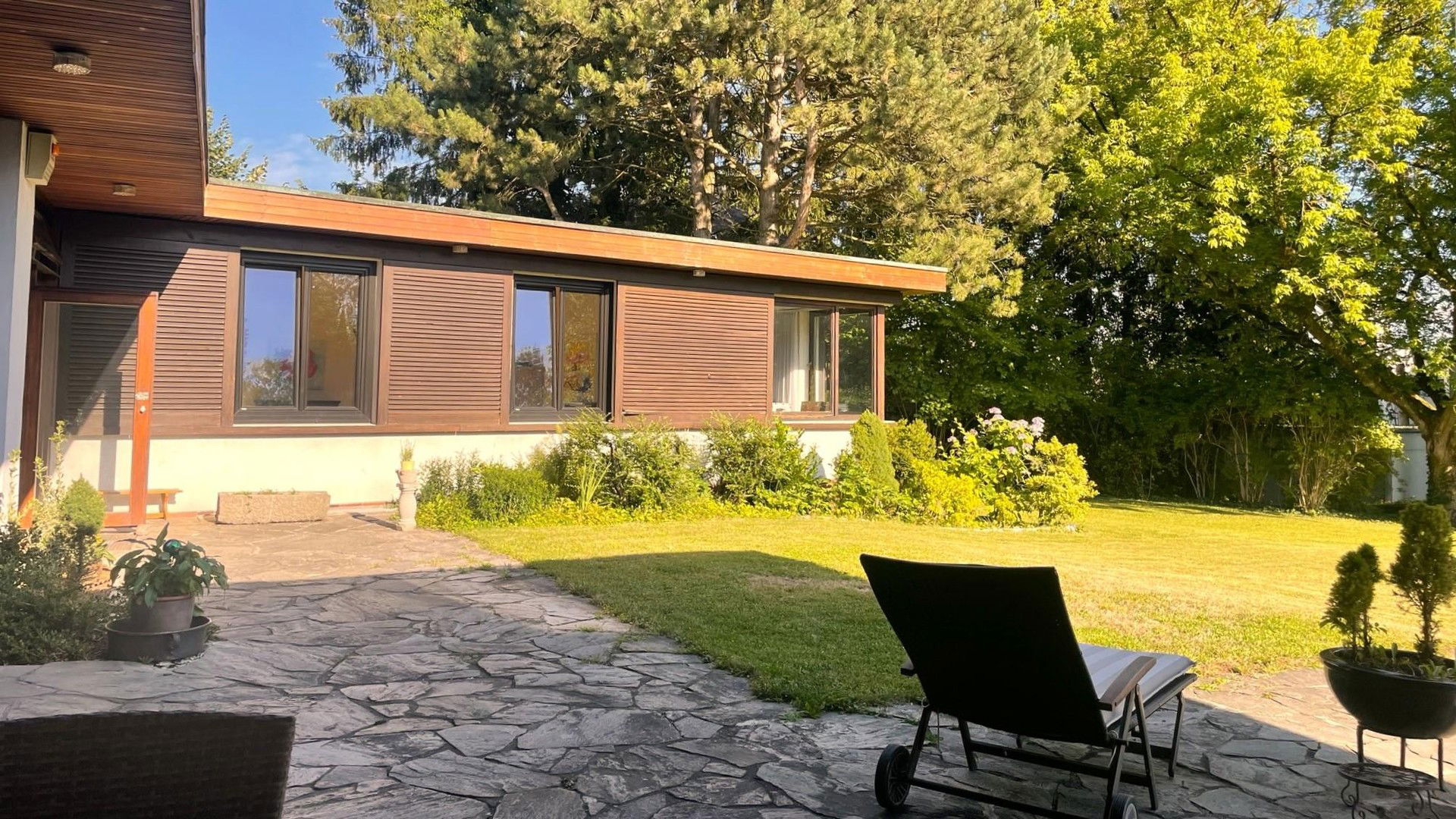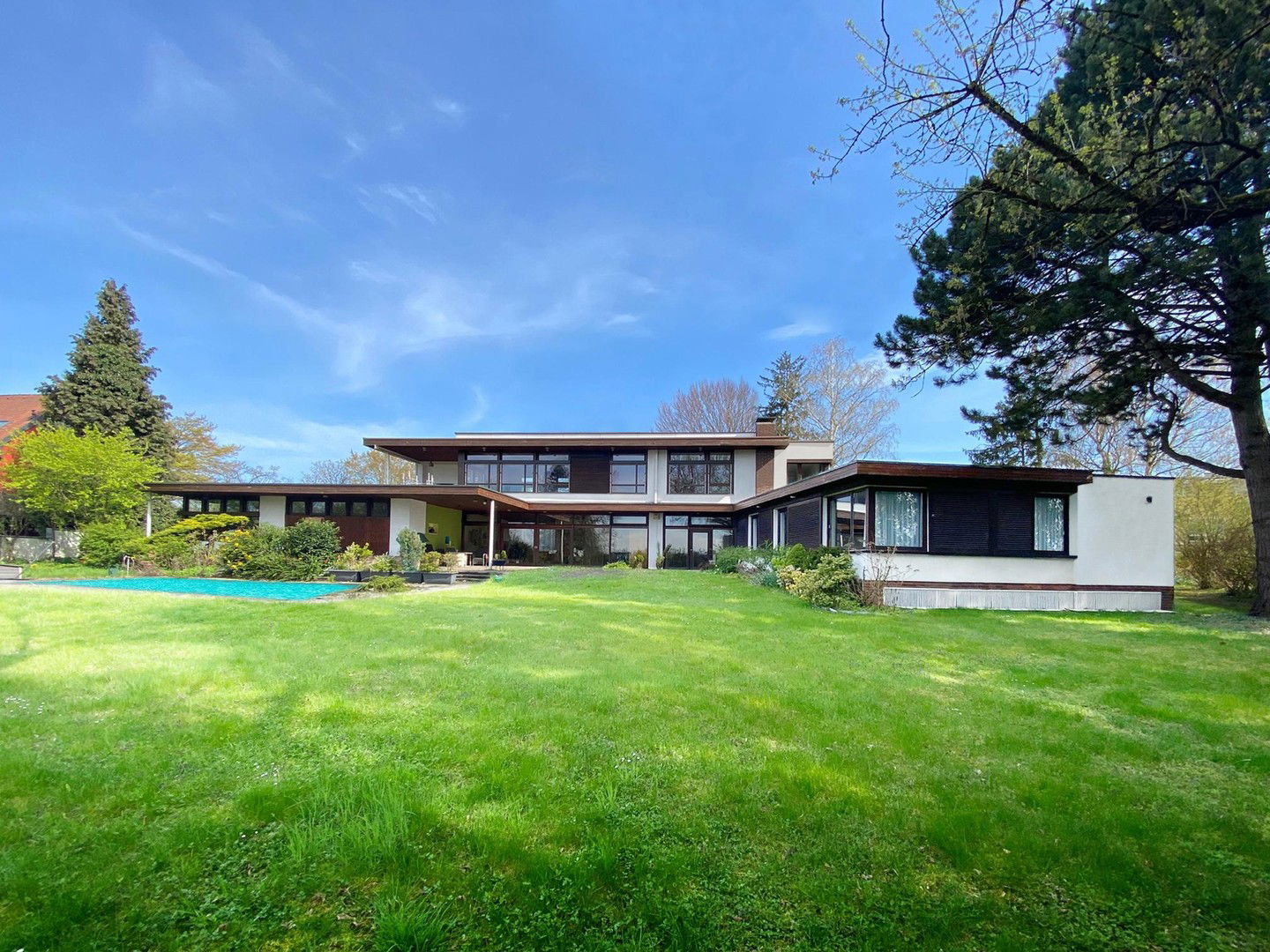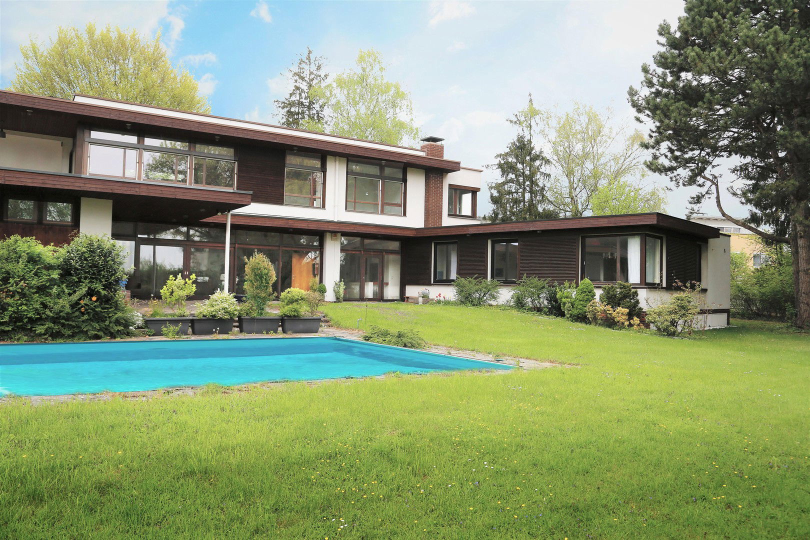Das Haus liegt in einem parkähnlichen Garten (2.426 m²) mit Swimmingpool, Sonnenterrasse und altem Baumbestand.