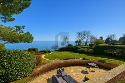 Cette villa ultra exclusive, pieds dans l?eau, se distingue par une surface nette de 169 m² et une surface brute de 255 m² incluant balcon et sous-sol, ainsi qu?une vue imprenable sur le lac et les Alpes depuis tous les niveaux. Le rez-de-chaussée propose une cuisine entièrement équipée avec coin repas, un salon lumineux et un bureau élégant. À l?étage, deux chambres avec leurs salles de bains privatives s?ouvrent sur un large balcon orienté plein sud. Le sous-sol, intégralement aménagé, offre une chambre d?amis, une salle de cinéma et une salle de bain avec douche. Rare sur le marché, la propriété dispose en outre d?un ponton privé permettant un accès direct au lac.