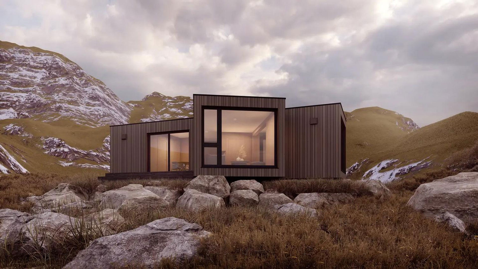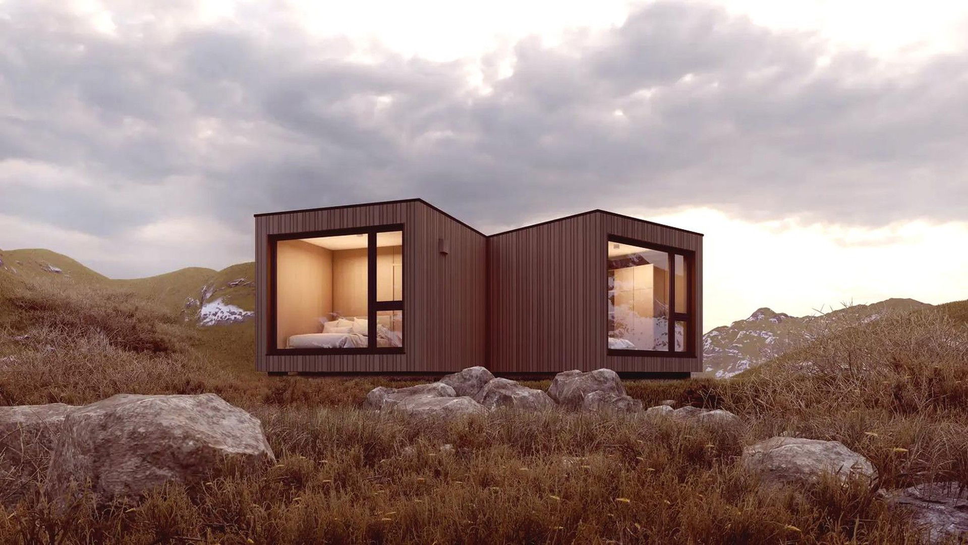 Frühmorgens mit den Vögeln erwachen, barfuß durch den Tau laufen und zuschauen, wie zaghafte Sonnenstrahlen mit den Nebelschwaden flirten. Nach einer Runde im See den ersten Kaffee des Tages genießen. Kurz nochmal ins Bett kuscheln, bis das Frühstück auf die sonnige Terrasse lockt. Gefällt Ihnen so ein Szenario? Unser Mini-Ferienhaus mit einem Schlafzimmer wäre eine schöne Basis dafür. Klein genug, dass es kaum Arbeit bereitet, groß genug für entspannte Auszeiten. Es ist Raum für eine Küchenzeile, dem komfortablen Duschbad fehlt es an nichts, und drei gläserne Panoramawände bieten einen herrlichen Ausblick.