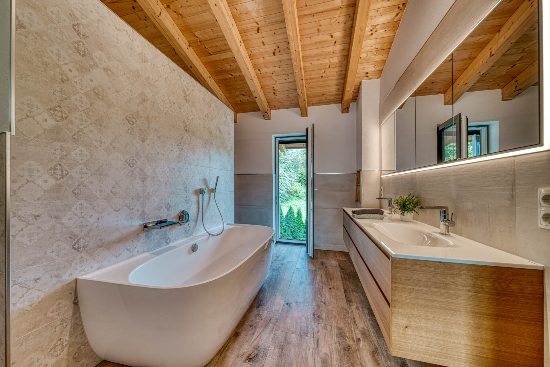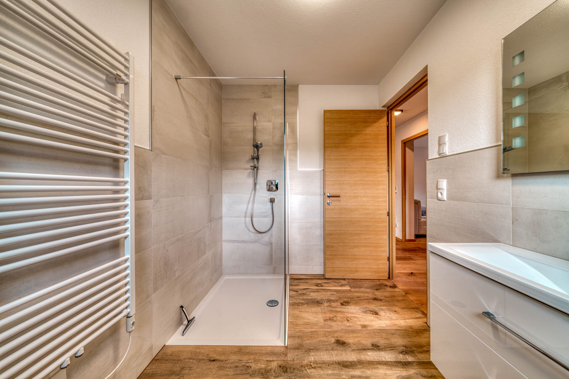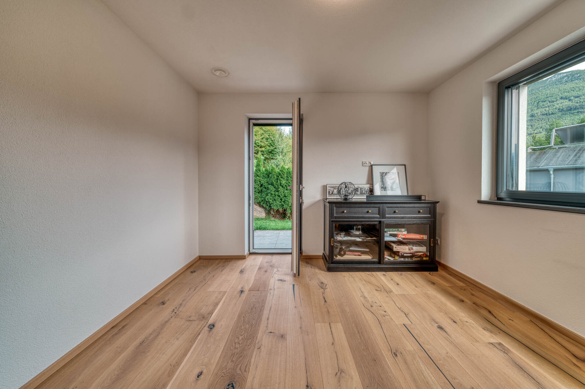 •Oberflächen: hochwertiger Landhausdielen Parkett (Eiche geölt), Feinsteinzeug und Vollholztüren