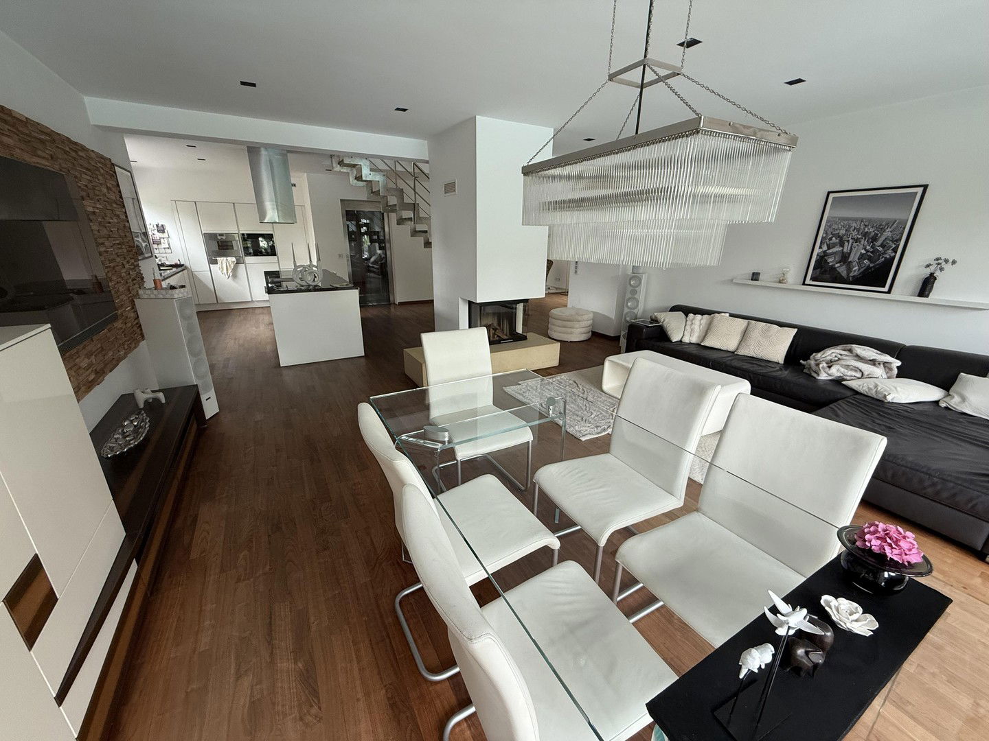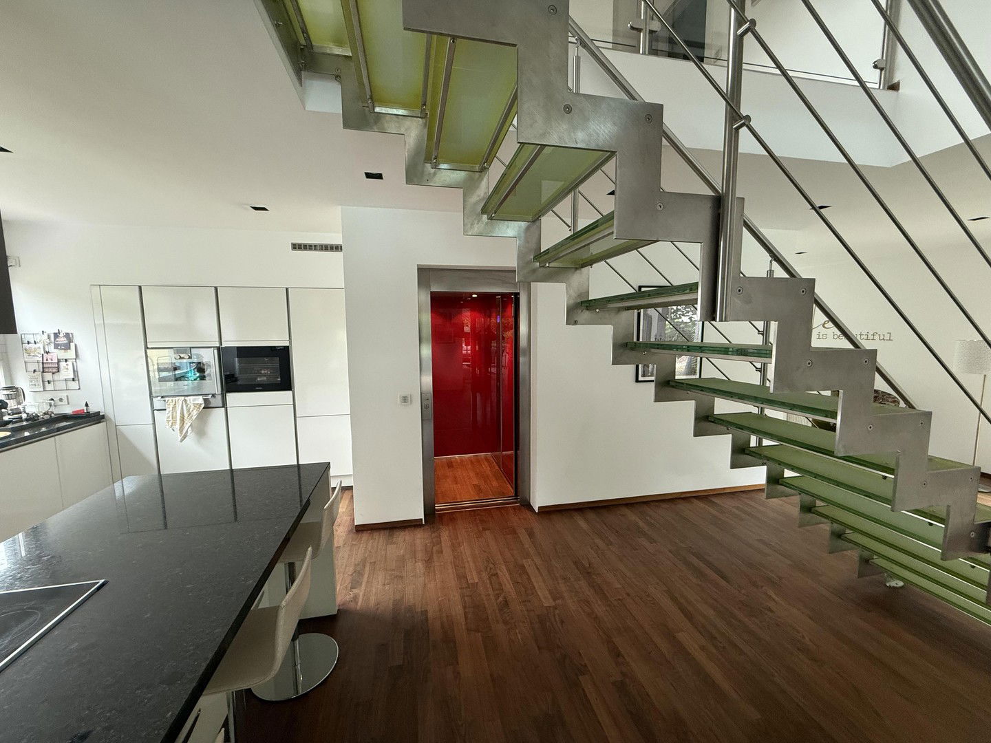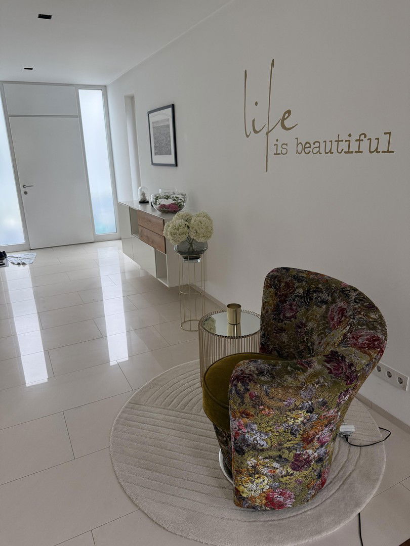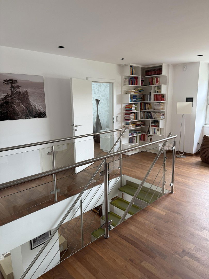 Modernes, vollausgestattetes Einfamilienhaus mit großzügigen, gärtnerisch gestalteten, Garten. Mit dem Aufzug gelangen Sie in alle Ebenen, einschließlich Keller. Großzügig dimensionierte Terrassen.