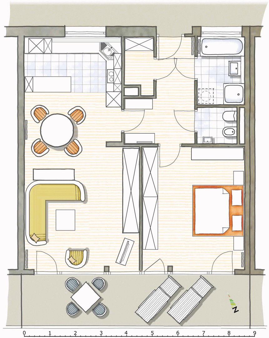 Die Wohnung kann nur zusammen mit folgender Kücheneinrichtung, Badezimmereinrichtung und Waschmaschine per Privatvertrag für 18.000 € erworben werden. Diese zählen nicht zu den Herstellkosten, weshalb sie nicht in den notariellen Vertrag aufgenommen werden können.