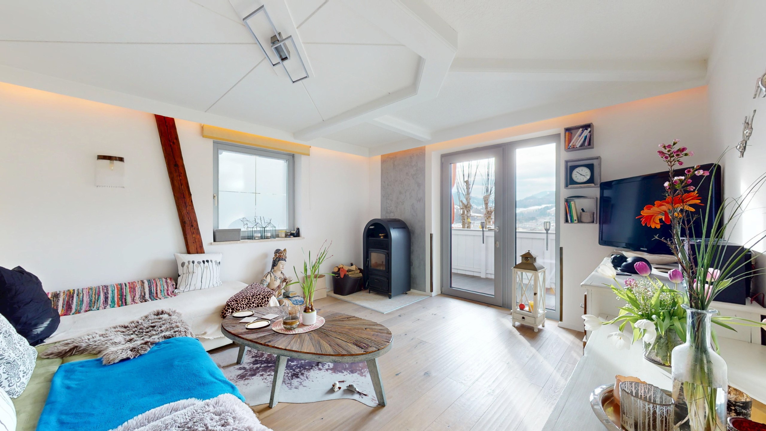 Die liebevoll gestaltete 3-Zimmer-Wohnung, ist in einem Wohngebäude mit 2 Wohnungen angeordnet – im Jahr 1995 vollumfänglich adaptiert. Ein medieteraner/ moderner Baustil, die optimale Raumgestaltung samt guter Bauausführung sprechen für sich – Kunststofffenster, Holztüren/ -zargen – Buche, Parkettböden/ Fliesenböden, modernes Bad, Fußbodenheizung/ Öl-Zentralheizung usw. Zwei Balkone und eine großzügige Terrasse laden zu Entspannung und Geselligkeit im Freien ein. Die Terrassenwohnung vermittelt ein gemütliches Wohnambiente nahe Natur und abseits von Hektik. KAMIN IM WOHNZIMMER SORGT FÜR BEHAGLICHKEIT