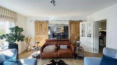 - Geräumiges Wohn - und Esszimmer mit Schiebetüren geteilt