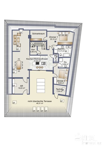 Ein besonderes Highlight ist die traumhafte Terrasse, angelegt wie ein Innenhof sorgt sie für ausreichend Privatsphäre und bietet ein angenehmes Flair. Genießen Sie entspannte Stunden im Freien und lassen Sie sich von der Sonne verwöhnen.