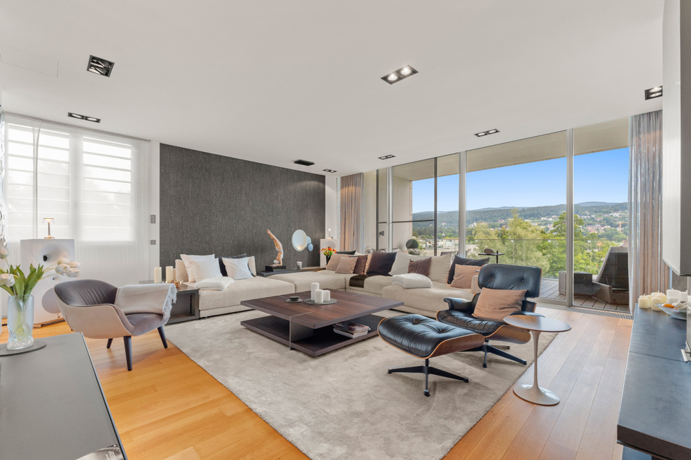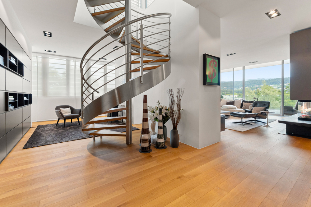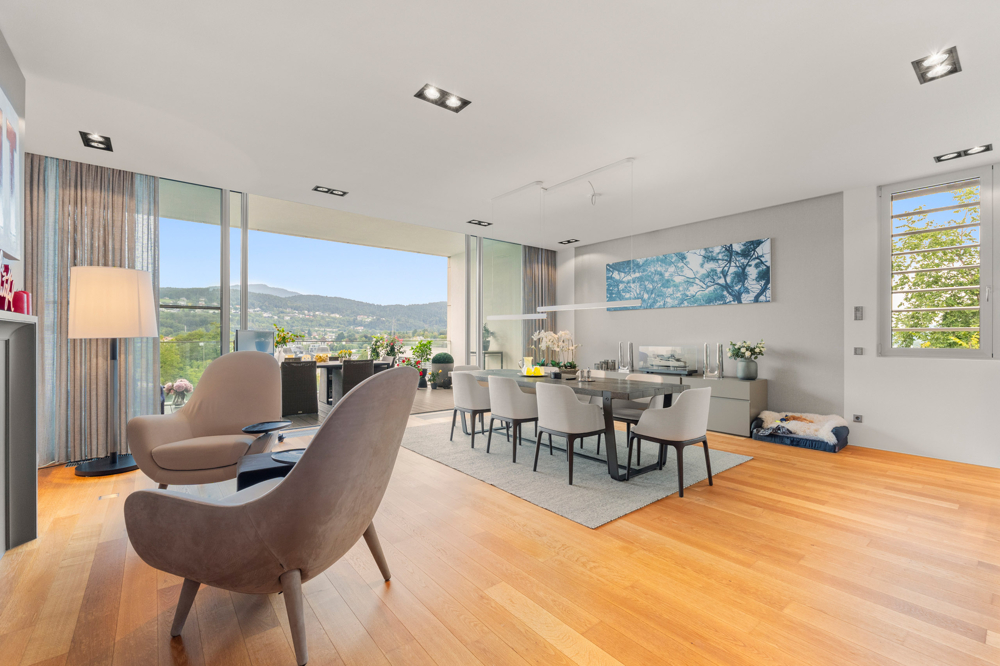 Vorraum, offener Essbereich mit Küche, Wohnbereich, drei Schlafzimmer, Ankleidezimmer, drei Bäder, Wirtschaftsraum, Gäste-WC, vier Loggien, Dachterrasse