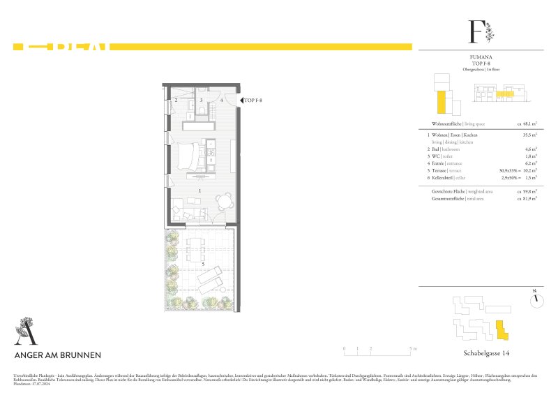 Das Angebot reicht von kompakten 1 Zimmer-Apartments bis hin zu großzügigen 5 Zimmer-Maisonette-Wohnungen. Alle Einheiten verfügen über großzügige Außenflächen in Form von Gärten, Balkonen oder Terrassen mit herrlichem Blick ins Grüne.
