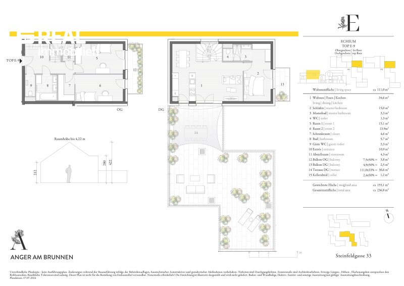 Das Angebot reicht von kompakten 1 Zimmer-Apartments bis hin zu großzügigen 5 Zimmer-Maisonette-Wohnungen. Alle Einheiten verfügen über großzügige Außenflächen in Form von Gärten, Balkonen oder Terrassen mit herrlichem Blick ins Grüne.