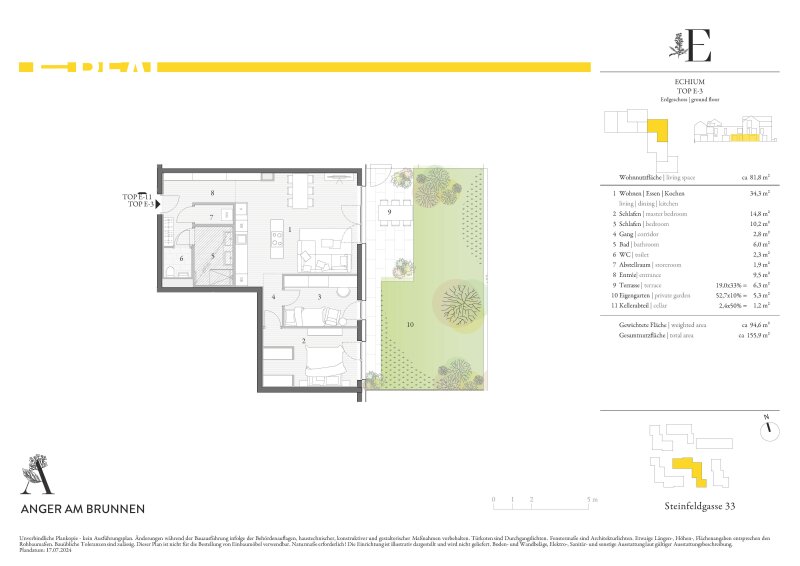 Das Angebot reicht von kompakten 1 Zimmer-Apartments bis hin zu großzügigen 5 Zimmer-Maisonette-Wohnungen. Alle Einheiten verfügen über großzügige Außenflächen in Form von Gärten, Balkonen oder Terrassen mit herrlichem Blick ins Grüne.