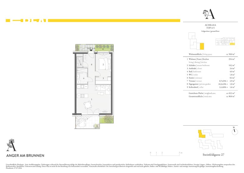 Stellplatz im Freien: € 10.395,00 Stellplatz überdacht: € 12.968,00 Stellplatz Garage: € 17.430,00 geräumige Motorrad-/Fahrradbox: € 3.780,00Lage & Infrastruktur: