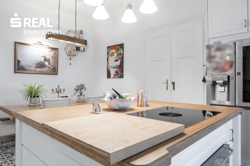 Die voll ausgestattete, offene Wohnküche bietet viel Stauraum und Arbeitsfläche für Hobbyköche. Ihre Gäste werden Sie beneiden.
