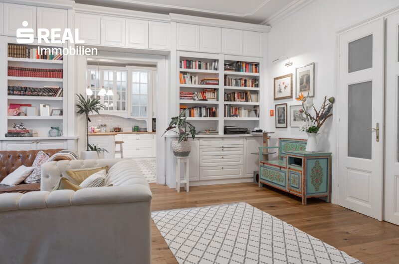 Die Wohnung, mit einer Nutzfläche von ca. 124 m², ist mit einem hochwertigen Echtholzparkettboden und Designer Fließen ausgestattet. Die Beheizung der Wohnung erfolgt mittels Fußbodenheizung, die ein sehr angenehmes Raumklima erzeugt. Die Fenster wurden 2023 erneuert und blockieren jeglichen Straßenlärm.