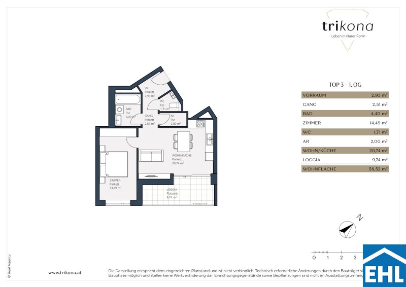 Die hochwertige Ausstattung des Projekts „Trikona“ und die Holz-Hybrid-Bauweise spiegeln exzellentes Design und Qualität wider. Zeitlose Unterputzarmaturen der Firma Grohe sorgen für eine elegante Optik und praktische Nutzung. Das Weitzer Echtholzparkett schafft eine warme, natürliche Atmosphäre in den Räumen, während die moderne Smart Home Anlage das Wohnen komfortabel und intelligent macht – von der Steuerung der Beleuchtung bis hin zu Heizung und Sicherheitssystemen. Für Energieeffizienz sorgen eine Wärmepumpe mit Fußbodenheizung sowie eine innovative Kühlung via Bauteilaktivierung, die das ganze Jahr über für angenehme Temperaturen sorgt. Hochwertige Feinsteinfliesen im Badezimmer und in der Küche verleihen den Räumen einen eleganten, pflegeleichten Look. Echtholzböden ergänzen das harmonische Gesamtbild und unterstreichen die Qualität der Ausstattung. Besonders hervorzuheben ist, dass alle verwendeten Materialien, Marken und Subunternehmen aus Österreich stammen. Damit wird nicht nur höchste Qualität garantiert, sondern auch die lokale Wirtschaft nachhaltig unterstützt. Diese Kombination aus österreichischer Handwerkskunst, Ästhetik und Funktionalität macht das Wohnerlebnis in „Trikona“ einzigartig.
