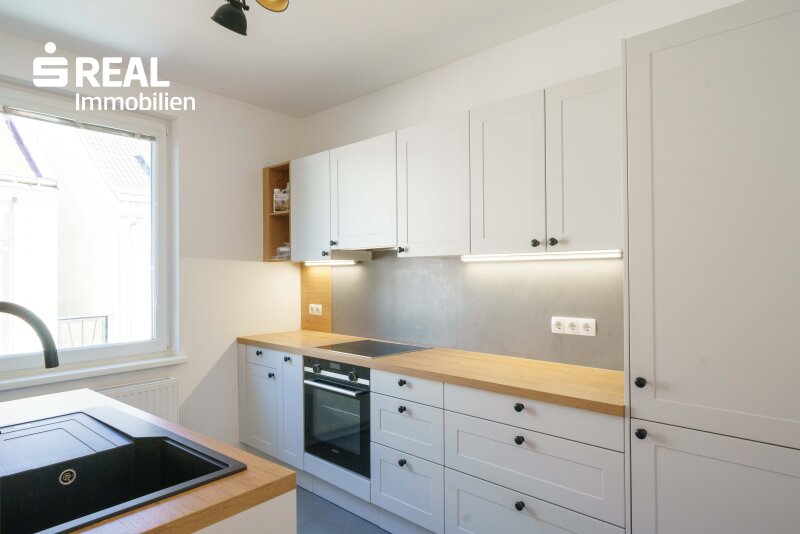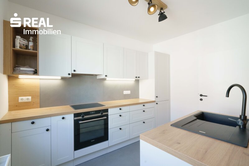 Studioküche mit AEG und Siemensgeräten sowie Bad bleiben eingerichtet.