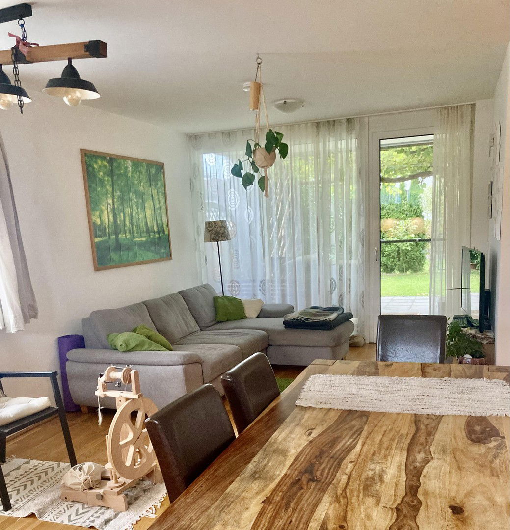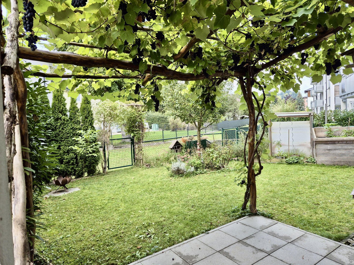 Mit 60m2 Eigengarten, Naturzaun, Obstbaum, Weinlaube und Sonne von drei Himmelsrichtungen hat diese neuwertige, familienfreundliche Wohnung Reihenhauscharakter.