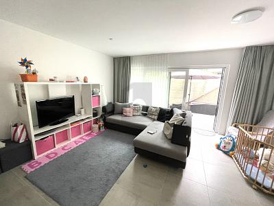 Moderno appartamento di 3.5 locali con terrazza , in una residenza di recente costruzione, in un contesto residenziale in piena tranquillità e circondato dal verde. Situato al piano terra della residenza, l?immobile è internamente composto da: luminoso soggiorno con cucina a vista e ampia vetrata che consentono l?accesso alla terrazza, disimpegno che conduce alla stanze, camera matrimoniale con bango personale, cameretta, bagno.