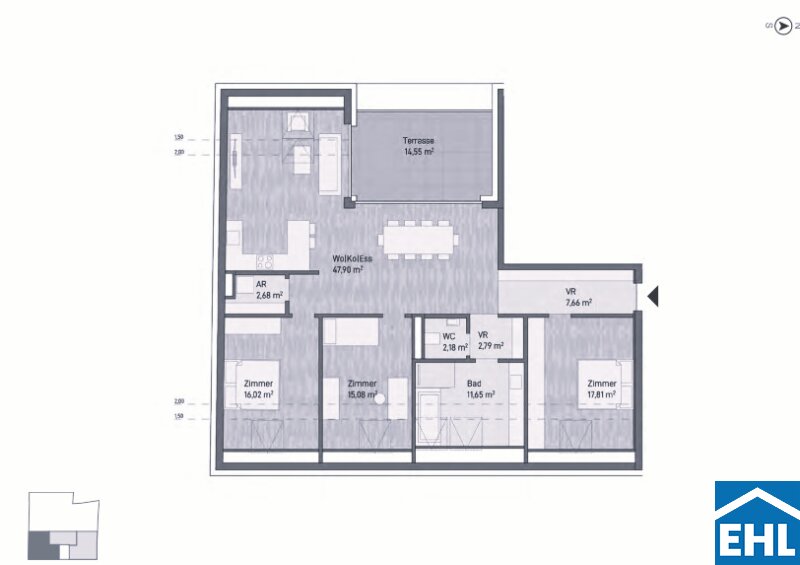 Die 2- bis 4-Zimmer-Wohnungen verfügen über Wohnflächen von rund 30 bis 124 m² und bieten durchdachte Grundrisse sowie helle, freundliche Räume.