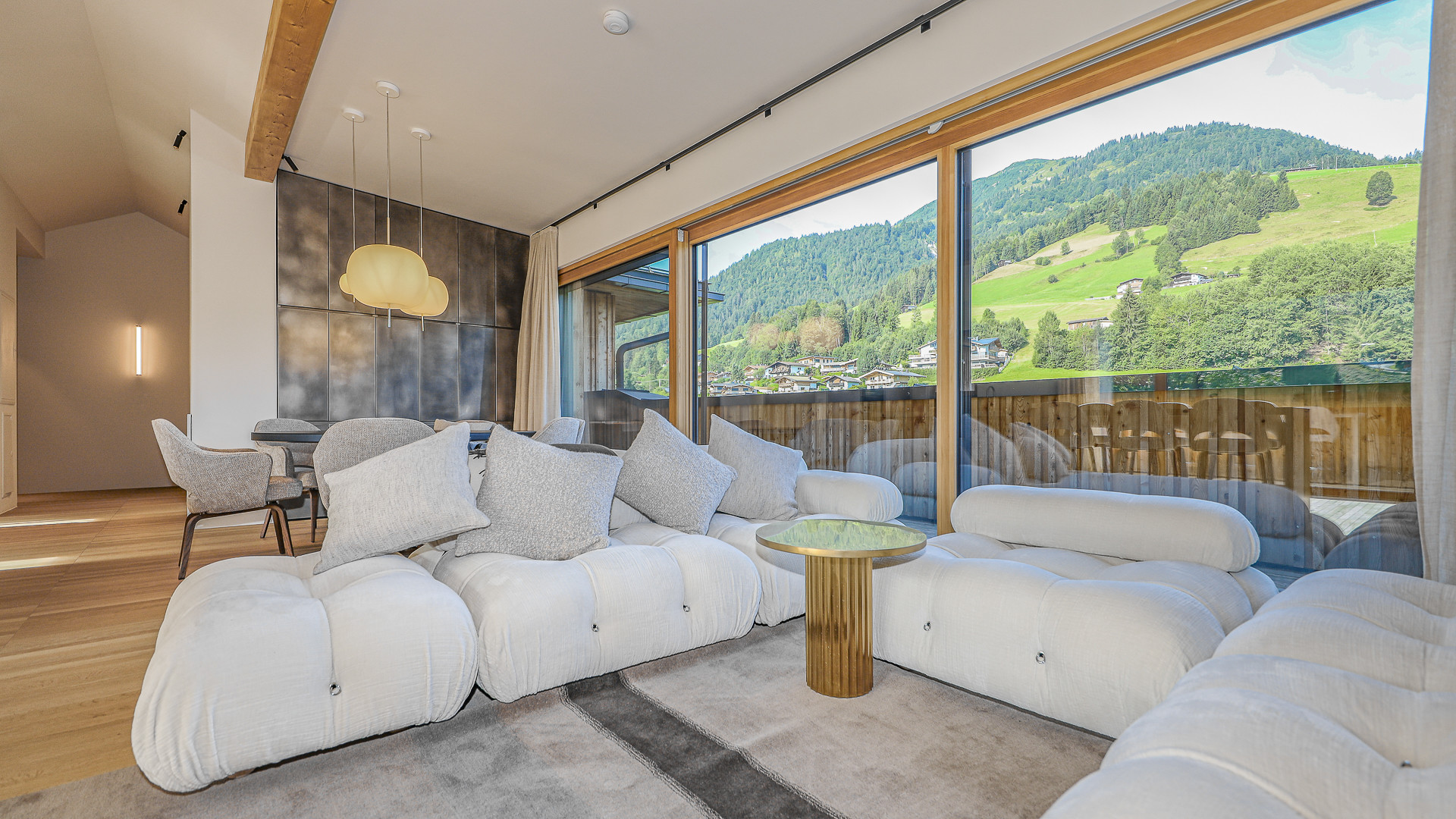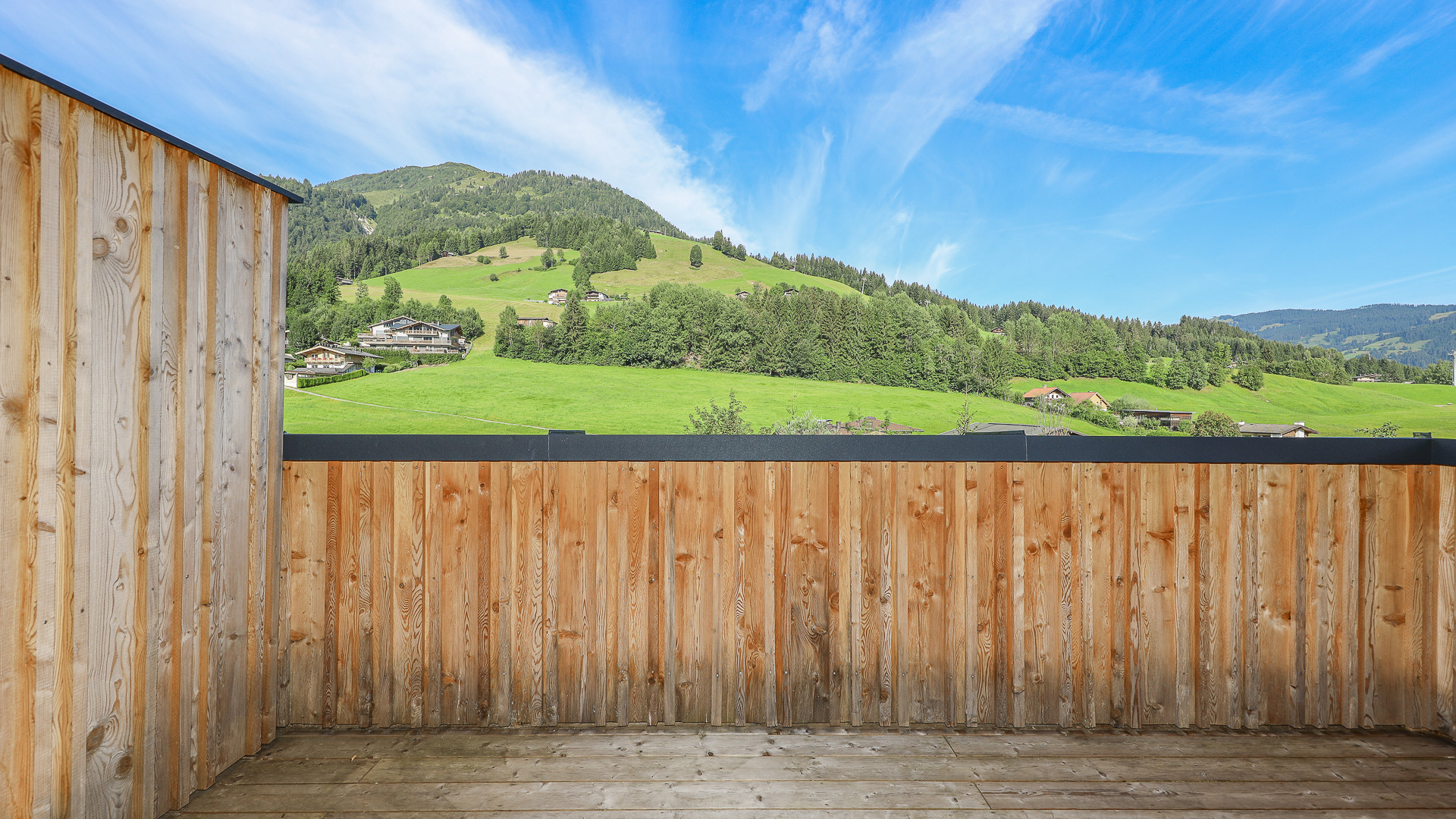 Vom Wohnraum gelangt man auf zwei Balkon-Terrassen mit traumhaftem Ausblick auf den Rettenstein, das Kitzbüheler Horn und den Sonnberg.