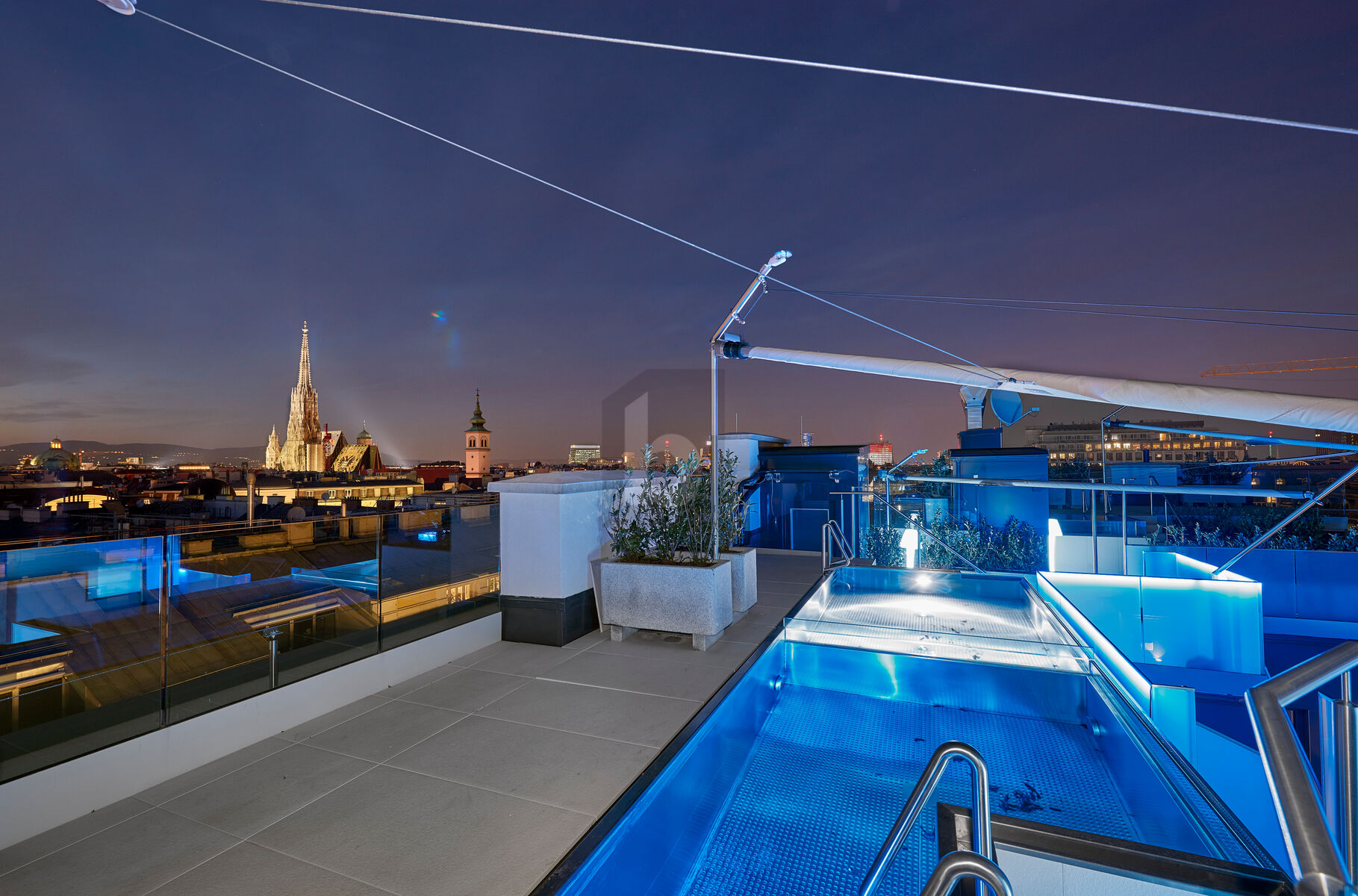 In bester Lage im Herzen von Wien steht dieses beeindruckende Penthouse zum Kauf bereit. Mit seinen exklusiven Merkmalen wie dem größten Dachflächenfenster am Markt, das elektrisch geöffnet werden kann, und der größten Fliese der Welt aus Feinsteinzeug von Max Fine, ist diese Immobilie ein wahres Juwel. Der Concierge-Service, Sicherheitskameras, eine Garage im Haus und großzügige Raumplanung mit Raumhöhen von bis zu 7,5 m bieten ein Höchstmaß an Komfort und Sicherheit. Der interne Lift führt Sie bequem von der Schlaf- zur Wohn- und Poolebene. Modernste Technik wie ein BUS-System, Deckenkühlung, Wärmepumpen und LED-Beleuchtung in jeder Farbe sorgen für ein luxuriöses Wohnambiente. Ein eigener Weinkeller und hochwertige Sanitäreinrichtungsgegenstände von Villeroy und Boch sowie Armaturen von Dornbracht runden das Angebot ab. Dieses Penthouse ist ideal für anspruchsvolle Kriterien, die nach dem Höchstmaß an Komfort und Luxus suchen.