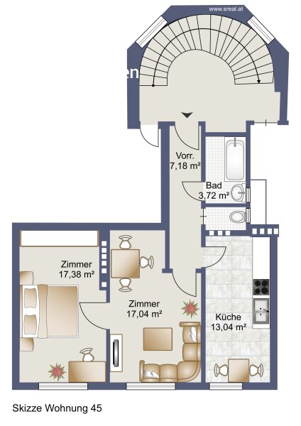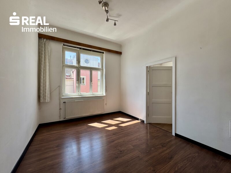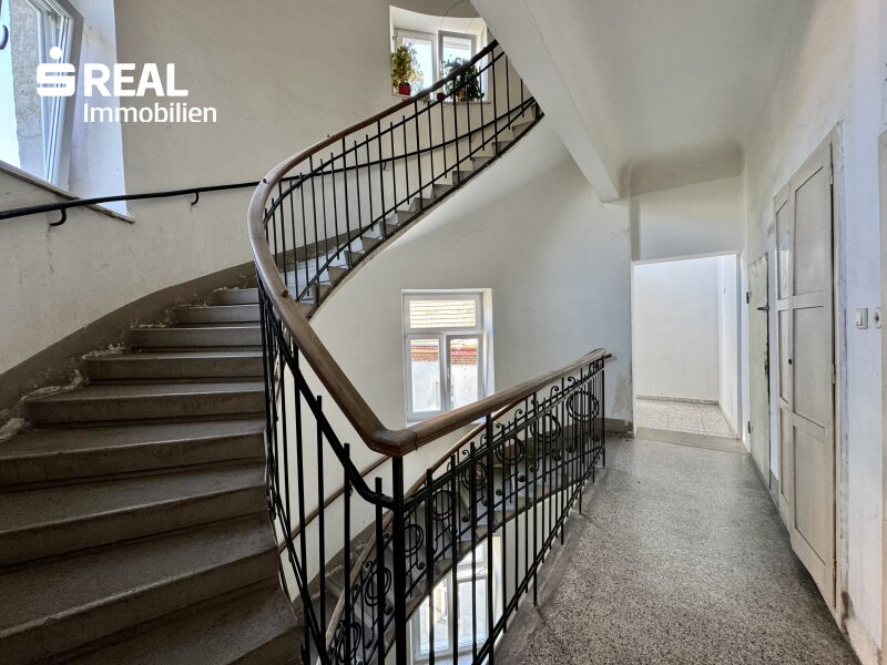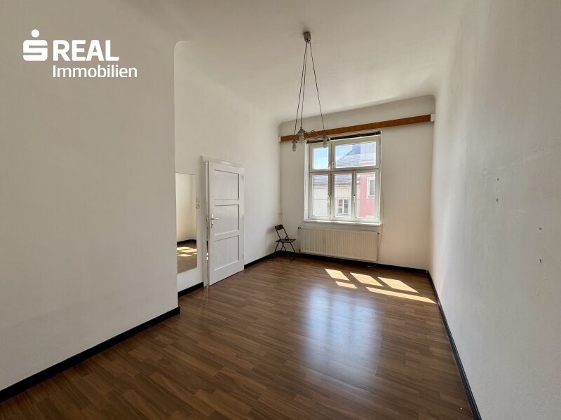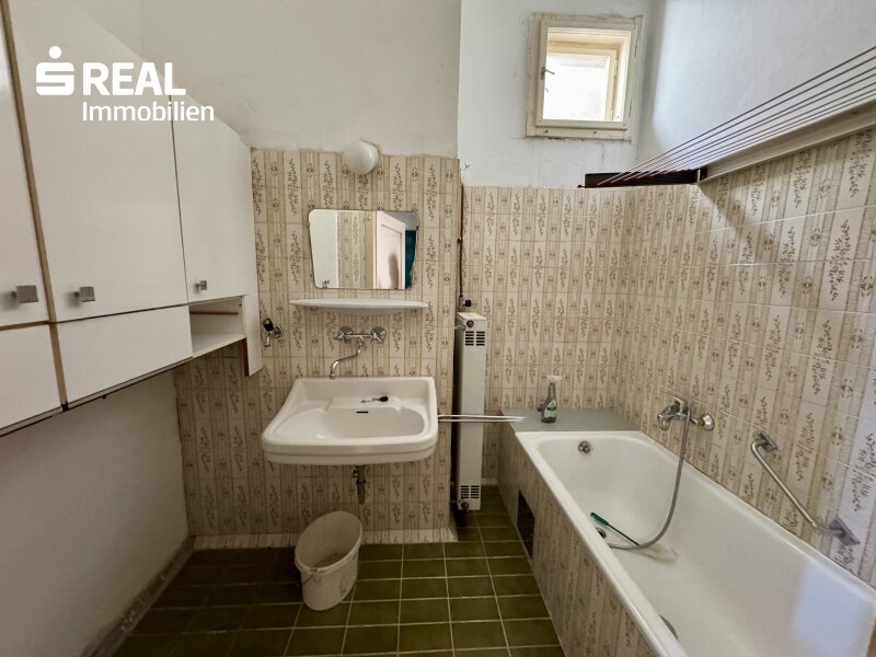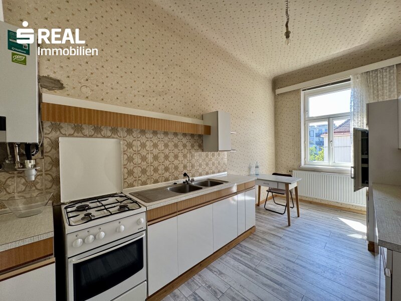 Die renovierungsbedürftige Wohnung unterteilt sich in Vorraum, große Küche mit Möglichkeit einen Essplatz zu schaffen, Wohnzimmer, Schlafzimmer, Badezimmer und separate Toilette (beide Nassräume haben Fenster in den Lichthof).