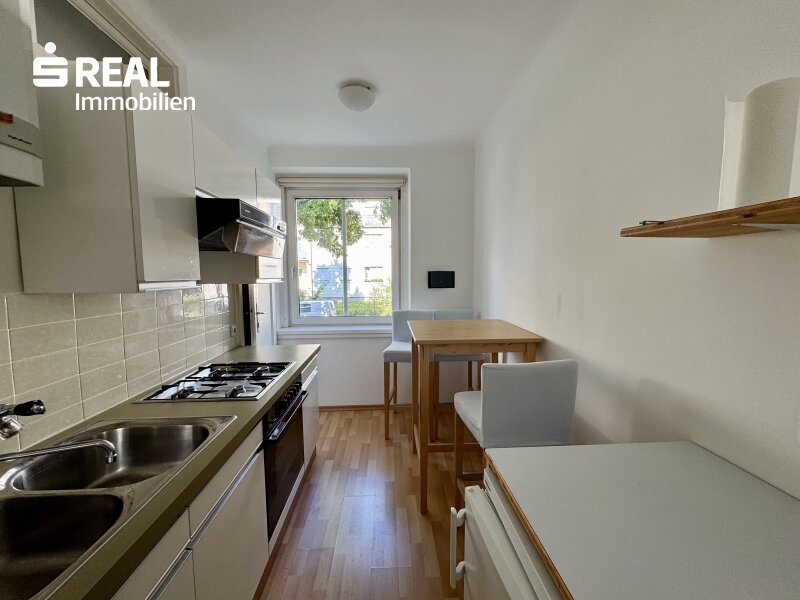 Die Wohnung befindet sich auf Stiege 1 im Hochparterre und die beiden Fenster blicken ostseitig in die kaum befahrene, mit schönen Bäumen bepflanzte Straße (keine Beeinträchtigung durch vorbeigehende Anwohner).