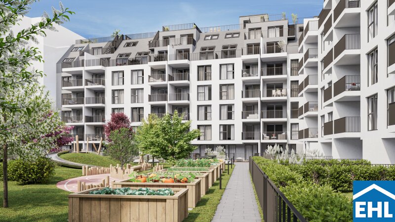 Das Herzstück des Projekts ist der knapp 1.000 m² große Innenhof, der den Bewohnern exklusiv zur Verfügung steht und u.a. zum Verweilen und Urban Gardening einlädt. Eine Ruheoase und Rückzugsort, der seinesgleichen sucht und das direkt vor Ihrer Wohnungstür.