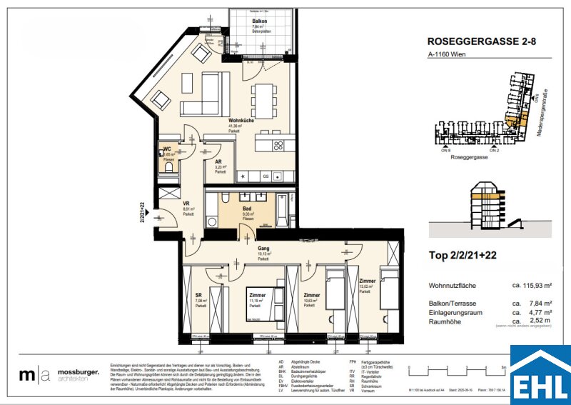 In der Roseggergasse 2–8, unweit des Wilhelminenbergs, entstehen 124 hochwertige Eigentumswohnungen. Die Wohnflächen reichen von ca. 39 m² bis 245 m² und bieten Grundrisse mit zwei bis sechs Zimmern – ideal für unterschiedlichste Wohnbedürfnisse.