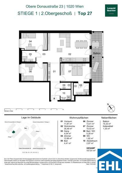 Eingebettet zwischen dem Donaukanal, dem grünen Augarten und dem pulsierenden 1. Wiener Gemeindebezirk vereint das LeopoldQuartier Natur, Urbanität und höchste Lebensqualität. Stephansdom, Kärntner Straße und die kulinarischen Hotspots des Servitenviertels sind fußläufig erreichbar.